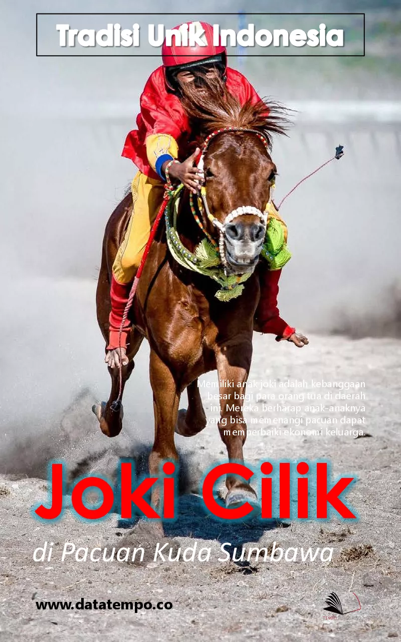 Sepanjang tahun masyarakat Sumbawa gemar berkunjung ke arena maen jaran alias pacuan kuda Jokinya rata rata bocah 5 12 tahun mdash dan dikenalkan dengan kuda sejak berusia di bawah lima tahun Kemenangan di arena pacuan adalah prestise dan uang sekaligus ironi pendidikan anak anak itu terabaikan