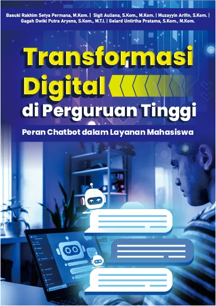 Chatbot merupakan aplikasi komputer cerdas yang dapat berkomunikasi dengan pengguna Chatbot menggunakan sistem pengenalan suara otomatis speech recognition pembelajaran mesin machine learning dan kecerdasan buatan artificial intelligent Chatbot memberikan banyak keunggulan dan sedikit kelemahan sehingga banyak pebisnis di Indonesia yang mengadopsi penggunaan chatbot untuk mendukung bisnis mereka Saat ini chatbot juga dapat diadopsi penggunaannya dalam lingkup perguruan tinggi Beberapa keunggulan yang ditawarkan dalam mendukung berbagai kegiatan akademik mahasiswa seperti biodata mahasiswa biodata dosen mengisi Kartu Rencana Studi KRS informasi Kartu Hasil Studi KHS akses ke buku buku di perpustakaan jurnal dan sebagainya Selain itu aplikasi ini juga memanfaatkan fitur notifikasi yang tersedia pada perangkat Android untuk memberikan informasi tentang nilai mata kuliah melalui notifikasi kepada pengguna Buku ini membahas perancangan chatbot di ruang lingkup perguruan tinggi dan keunggulan yang diperoleh sehingga buku ini cocok bagi pembaca untuk meningkatkan wawasan mengenai transformasi digital di perguruan tinggi