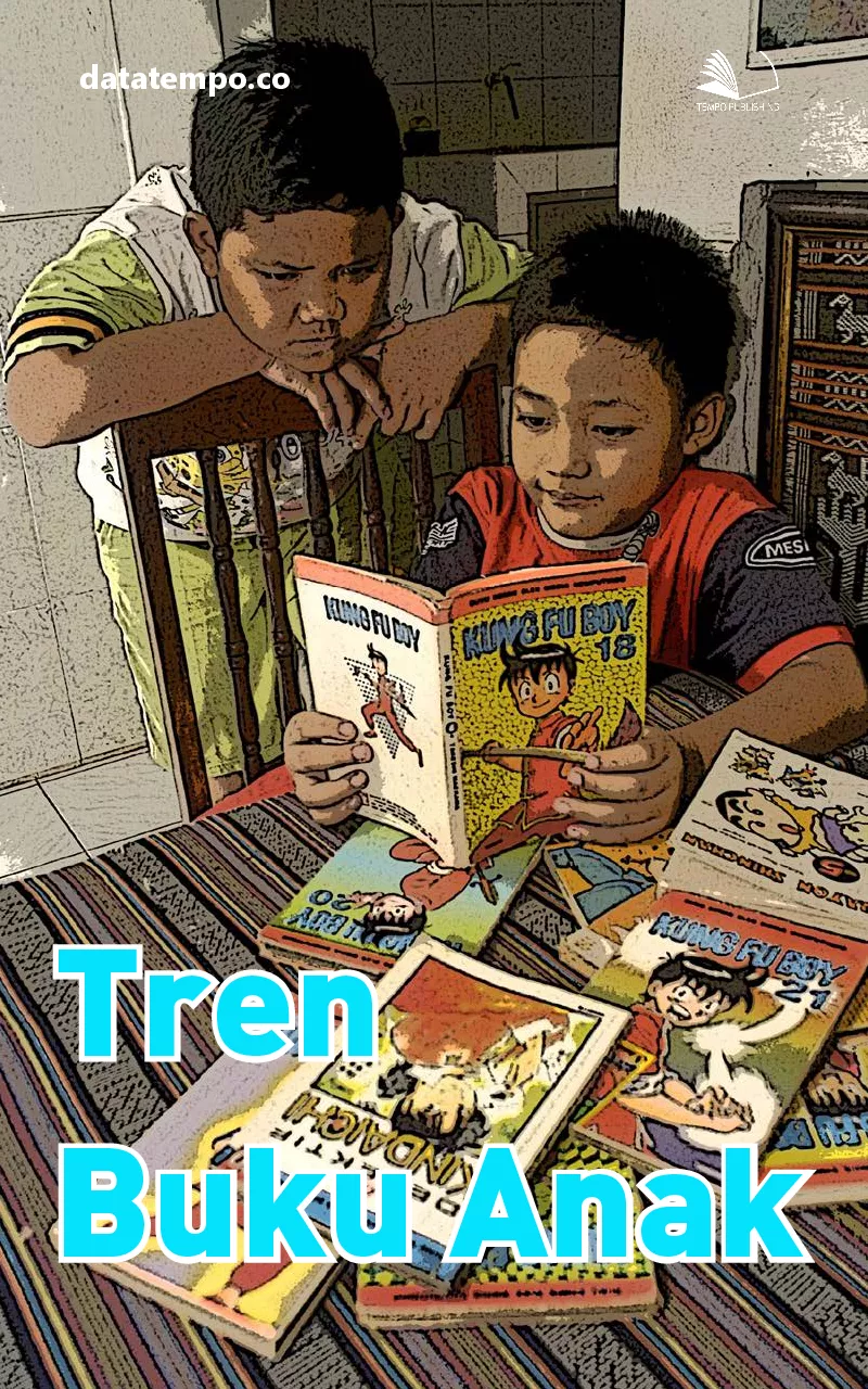 Duduk di lantai tepat di depan pintu masuk Gedung Landmark Kota Bandung Jawa Barat Adnia 12 tahun tekun membaca komik Petualangan Doraemon