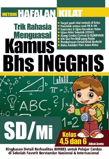 Sinopsis Buku: Buku ini merupakan panduan lengkap untuk mempelajari Bahasa Inggris bagi siswa SD/MI kelas 4, 5, dan 6. Buku ini dirancang untuk membantu siswa memahami dan menguasai berbagai konsep dasar bahasa Inggris secara sistematis dan menyeluruh. Isi buku mencakup berbagai topik penting seperti Alfabet, Makanan dan Minuman, Binatang, Transportasi, Keluarga, Rumah, Kelas Belajar, Tempat Umum, Profesi, Olahraga, Mainan, Bagian Tubuh, Pakaian, Warna, Angka, Waktu, Arah, Kata Benda, Kata Kerja, Kata Sifat, serta berbagai ekspresi dan percakapan sehari-hari. Selain itu, buku ini juga dilengkapi dengan contoh soal dan kunci jawaban yang memudahkan siswa dalam belajar mandiri. Buku ini merupakan satu-satunya referensi yang cukup untuk memenuhi kebutuhan belajar Bahasa Inggris selama tiga tahun, sehingga siswa tidak perlu menggandeng buku lain. Buku ini sangat cocok digunakan oleh siswa, guru, dan tenaga pengajar sebagai acuan dalam menguasai bahasa Inggris secara efektif dan menyenangkan.