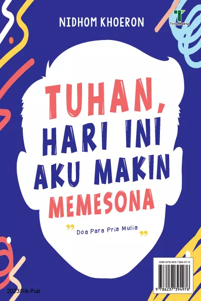 Sinopsis Buku: Buku *Tuhan, Hari Ini Aku Makin Memesona: Doa Para Pria Mulia* karya Nidhom Khoeron merupakan panduan lengkap dan mendalam untuk para pria yang ingin meningkatkan kualitas diri, memperkuat iman, dan menjadi sosok yang dicari oleh wanita di zaman modern. Buku ini membahas topik-topik penting seperti jodoh, keutamaan suami ideal, doa-doa yang bisa dilakukan untuk mendekatkan diri kepada Allah, serta cara menjadi pria yang shalih dan menjadi suami idaman bagi istri. Dalam bab *Jodoh Pasti Bersatu*, penulis menjelaskan bahwa jodoh adalah bagian dari rencana Allah I dan bahwa setiap manusia memiliki pasangan hidup yang telah ditentukan. Di bab *Suami Ideal Sepanjang Masa*, penulis memberikan gambaran tentang sifat-sifat seorang suami yang beriman, bertanggung jawab, dan penuh kasih sayang. Bab *Janjiku kepadamu* menggambarkan komitmen dan keseriusan dalam menjaga pernikahan, sementara bab *Perkaya dengan Sedekah* menekankan pentingnya amal kebajikan sebagai sarana mendekatkan diri kepada Tuhan. Buku ini juga dilengkapi dengan doa-doa yang bisa diucapkan oleh para pria untuk memperkuat iman, meningkatkan ketaqwaan, serta memohon perlindungan dan keberkahan dari Allah I. Dengan gaya penulisan yang santun, penuh semangat, dan didukung oleh referensi yang relevan, buku ini menjadi panduan praktis bagi pria yang ingin menjadi lebih baik dalam segi agama, sosial, dan keluarga.