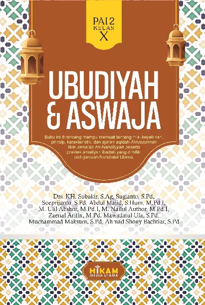 Buku Ubudiyah Aswaja yang ada di tangan pembaca ini merupakan buku yang sudah disiapkan untuk SMK dan umum buku ini sangat penting sebagai salah satu referensi bagi kita Secara strategis buku ini dirancang mampu memuat tentang nilai keyakinan prinsip karakteristik dan ajaran aqidah Ahlussunnah Wal Jama ah An Nahdliyyah beserta praktek amaliyah ibadah yang dimiliki oleh jamaah Nahdlatul Ulama