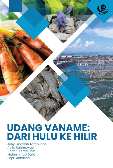 Udang vaname Litopenaeus vannamei merupakan udang asli wilayah subtropik yang diintroduksi ke wilayah Indonesia atas dasar SK Menteri Kelautan dan Perikanan RI Nomor 41 Tahun 2001 Budi daya udang vaname terus mengalami peningkatan yang signifikan dan sangat pesat di Indonesia Keberhasilan budi daya udang vaname ini menjadi pemicu perkembangan budi daya udang vaname seluruh Indonesia sehingga menjadikannya menjadi salah satu komoditas unggulan di Indonesia Selain itu udang vaname juga mempunyai keunggulan yaitu dapat tumbuh dengan cepat tingkat konsumsi pakan rendah mampu beradaptasi terhadap kisaran salinitas yang luas dapat dipelihara dengan padat tebar tinggi serta memiliki ketahanan hidup tinggi dalam menghadapi penyakit Hal inilah yang menjadikan udang vaname saat menarik untuk dipelajari lebih lanjut Buku Udang Vaname dari Hulu ke Hilir ini sangat sesuai untuk semua kalangan baik akademisi pembudidaya dan peneliti Buku ini dapat dijadikan sebagai literatur yang dapat memperkaya khazanah pengetahuan pembaca mengenai udang vaname dari berbagai aspek antara lain profil udang pembenihan pembesaran pemanenan transportasi pemasaran dan pengolahan pascapanen