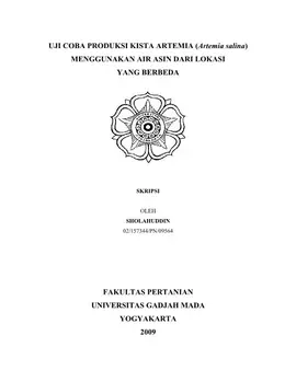 Uji Coba Produksi Kista Artemia (Artemia Salina) Menggunakan Air Asin Dari Lokasi Yang Berbeda Sholahuddin Fakultas Pertanian UGM Konten Lokal Konten Lokal 31307
