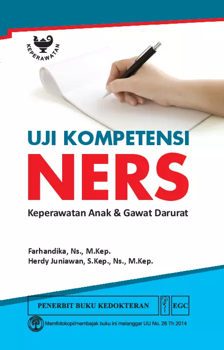 Pelayanan profesional keperawatan menuntut perawat untuk memiliki pengetahuan keterampilan dan sikap yang telah teruji melalui suatu uji kompetensi sehingga pelayanan tersebut nantinya sesuai dengan standar profesi Uji kompetensi Ners harus dijalani dan dilalui oleh perawat untuk mendapatkan gelar Ners sebagai gelar profesi serta memperoleh ijazah dan sertifikat kompetensi sebagai prasyarat untuk mendapatkan Surat Tanda Registrasi STR Buku ini membantu para perawat calon Ners dalam hal pengayaan soal uji kompetensi Ners sehingga memudahkan pengerjaan soal khususnya untuk bidang ilmu Keperawatan Anak dan Gawat Darurat Setiap soal diawali dengan Tinjauan dan Jabaran serta vignette kasus sebelum berlanjut ke pokok soal pertanyaan stem dan pilihan jawaban Semuanya terangkum secara instan dan sistematis ditambah dengan kunci jawaban