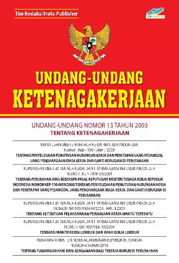 Sinopsis Singkat Buku "Undang-Undang Ketenagakerjaan" (UU No. 13 Tahun 2003) – Untuk Cover Belakang Buku Buku ini membahas secara menyeluruh tentang Undang-Undang Ketenagakerjaan Republik Indonesia Tahun 2003, yang merupakan salah satu kerangka hukum yang sangat penting dalam melindungi hak dan kewajiban pekerja/buruh serta pengusaha. Buku ini ditujukan untuk memberikan pemahaman yang jelas dan terstruktur mengenai konsep, prinsip, serta aturan-aturan yang terkait dengan hubungan industrial, perlindungan tenaga kerja, dan mekanisme penyelesaian perselisihan antara pekerja/buruh dengan pengusaha. Dalam buku ini, dibahas beberapa hal penting seperti definisi ketenagakerjaan, hak dan kewajiban pekerja/buruh serta pengusaha, perselisihan hubungan industrial, mogok kerja, penutupan perusahaan (lock out), dan pemutusan hubungan kerja. Selain itu, juga dijelaskan latar belakang penyusunan UU Ketenagakerjaan, yaitu karena kebutuhan pembangunan nasional yang memandang bahwa tenaga kerja memiliki peran dan kedudukan penting sebagai pelaku dan tujuan pembangunan. Oleh karena itu, perlu adanya perlindungan terhadap hak-hak dasar pekerja/buruh serta kesetaraan kesempatan tanpa diskriminasi. Buku ini juga menyertakan daftar isi yang mencakup UU Ketenagakerjaan, serta beberapa keputusan menteri yang terkait dengan pelaksanaan UU tersebut, seperti Keputusan Menteri Tenaga Kerja Nomor 150/Men/2000 dan Keputusan Menteri Tenaga Kerja dan Transmigrasi Nomor 78/MEN/2001 serta 100/MEN/VI/2004. Buku ini dirancang untuk menjadi referensi bagi pekerja, pengusaha, serikat pekerja, serikat buruh, serta pihak-pihak terkait dalam memahami dan menerapkan hukum ketenagakerjaan secara tepat dan sesuai.