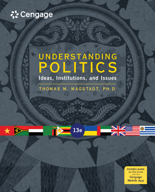Magstadt s UNDERSTANDING POLITICS IDEAS INSTITUTIONS AND ISSUES 13th Edition delivers in depth coverage of contemporary issues and places them in the context of more enduring underlying questions With a politics are pertinent theme it analyzes three fundamental premises Politics is a pervasive force in modern society government is too important to be left in the hands of a few and the right to participate in public life is a precious thing unique to republics It offers insight into key topics democracy dictatorship ideology citizenship voting behavior public policy leadership war foreign policy world politics while analyzing new issues including the Trump presidency social media in politics Russian interference in Western elections Brexit the rise of China as a partner and rival the appeal of populism and nativism as a reaction to globalism and more MindTap an outcome driven application that propels students from memorization to mastery is available with this title for the first time