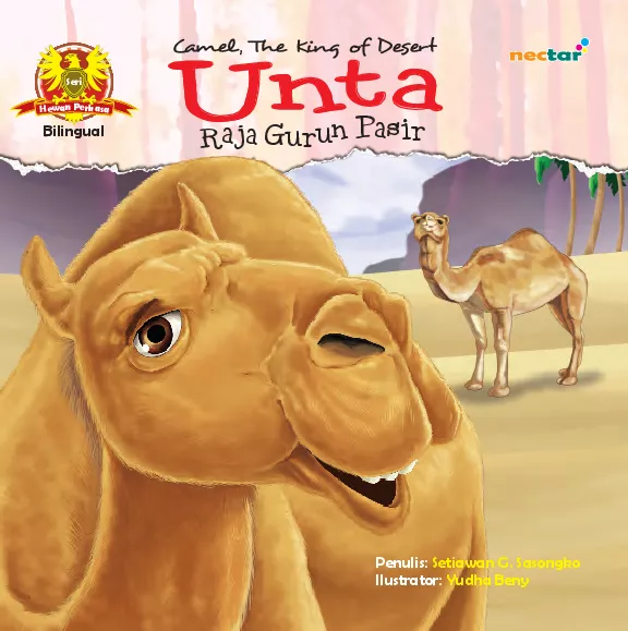 Hai teman teman Tentu kalian sudah tidak asing lagi dengan unta hewan berpunuk yang tinggal di gurun pasir Unta mampu berjalan di padang pasir tanpa makan dan minum selama 8 hari Untuk lebih menghemat air tubuh unta dapat bertahan hingga suhu 41 derajat Celsius tanpa berkeringat Waw Meski memikul beban berat hewan ini tidak terperosok ke dalam pasir Karena itu di daerah asalnya unta digunakan sebagai salah satu alat transportasi Tidak hanya mampu membawa banyak barang unta juga tahan terhadap badai gurun yang dapat datang sewaktu waktu Unta memiliki kelopak mata yang unik yang membantunya tetap dapat melihat saat badai pasir tiba Di siang hari yang terik unta terlihat nyaman merebahkan tubuhnya di atas pasir yang panas Waaah unta binatang yang hebat ya Ingin tahu kelebihan serta keunikan unta yang lain Yuk baca buku ini Jangan lupa koleksi semua serinya