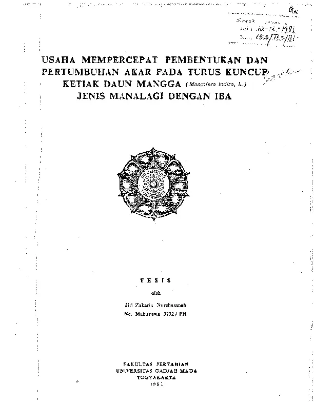 Usaha Mempercepat Pembentukan Dan Pertumbuhan Akar Pada Turus Kuncup Ketiak Daun Mangga ( Mangifera Indica L) Jenis Manalagi Dengan Iba Siti Zakaria Nurchasanah Fakultas Pertanian UGM Konten Lokal Konten Lokal 31053