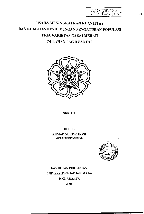 Usaha Meningkatkan Kuantitas Dan Kualitas Benih Dengan Pengaturan Populasi Tiga Varietas Cabai Merah Di Lahan Pasir Pantai Ahmad Nurfathoni Fakultas Pertanian UGM Konten Lokal Konten Lokal 48275