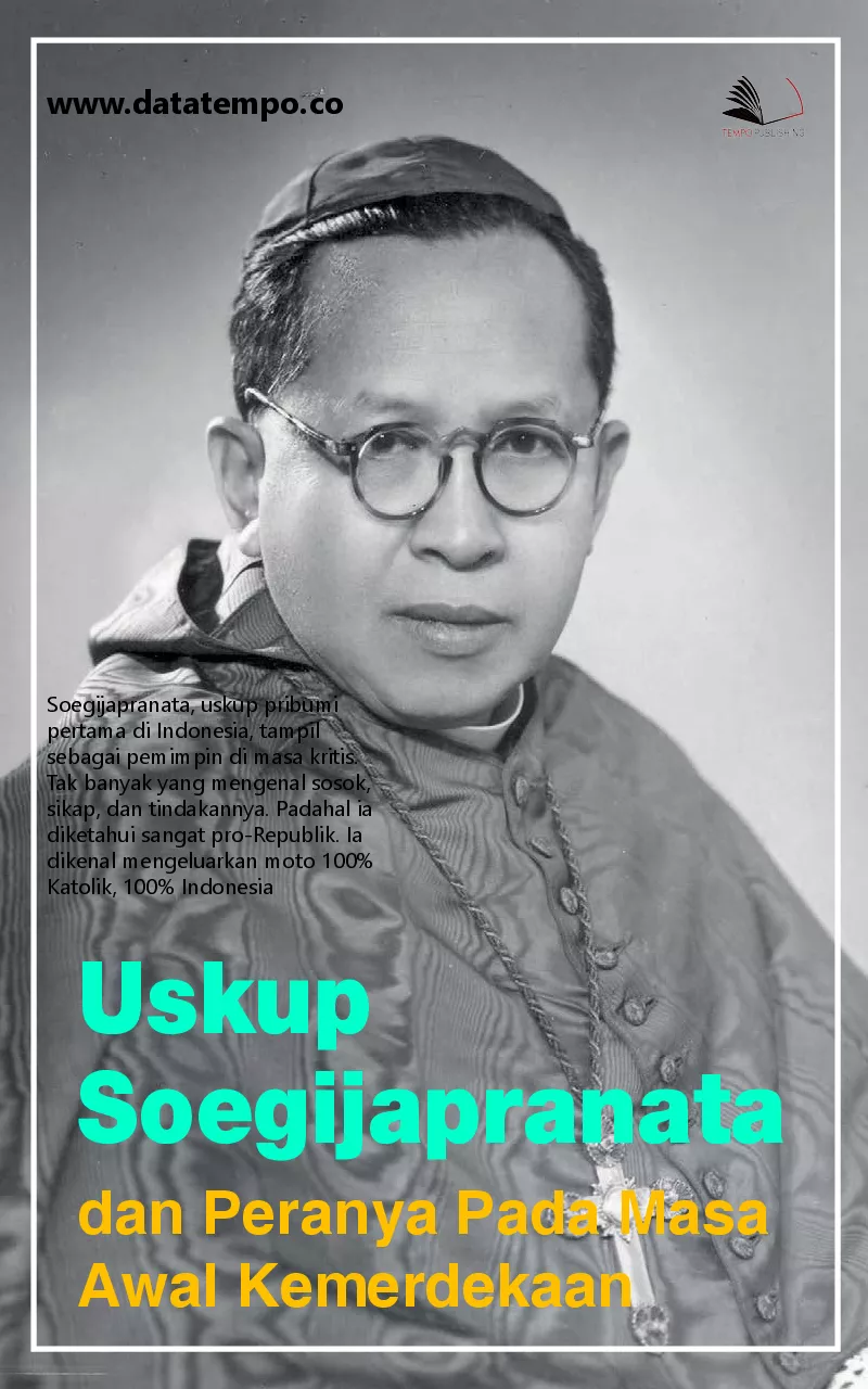 Soegijapranata uskup pribumi pertama di Indonesia tampil sebagai pemimpin di masa kritis Tak banyak yang mengenal sosok sikap dan tindakannya Padahal ia diketahui sangat pro Republik Ia dikenal mengeluarkan moto 100 Katolik 100 Indonesia