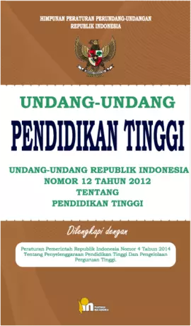 Sinopsis Singkat Buku ini untuk Cover Belakang Buku: Buku ini merupakan bagian dari upaya penerbit dalam menyosialisasikan Undang-Undang Republik Indonesia Nomor 12 Tahun 2012 tentang Pendidikan Tinggi kepada masyarakat luas dan para pemangku kepentingan. Buku ini bertujuan untuk memberikan pemahaman dan pengertian yang baik mengenai latar belakang, prinsip, fungsi, dan tujuan dari UU Pendidikan Tinggi tersebut. Dalam buku ini, dijelaskan bahwa Pendidikan Tinggi merupakan jenjang pendidikan yang berada setelah pendidikan menengah, yang mencakup berbagai program seperti diploma, sarjana, magister, doktor, dan profesi. Pendidikan Tinggi juga didasarkan pada beberapa asas seperti kebenaran ilmiah, kejujuran, keadilan, dan kebhinnekaan, serta memiliki tiga fungsi utama, yaitu pendidikan, penelitian, dan pengabdian kepada masyarakat yang dikenal sebagai Tridharma Perguruan Tinggi. Selain itu, buku ini juga menjelaskan tentang peran dan tanggung jawab Pemerintah dalam penyelenggaraan Pendidikan Tinggi, serta pentingnya pemerataan pelayanan pendidikan, terutama di daerah terpencil. Buku ini juga memberikan penjelasan mengenai definisi dan konsep dasar dalam pendidikan tinggi, seperti Humaniora, Perguruan Tinggi Negeri (PTN), Perguruan Tinggi Swasta (PTS), dan berbagai istilah kunci lainnya. Buku ini merupakan referensi yang relevan bagi para pimpinan universitas dan akademi, dosen, mahasiswa, serta pemangku kepentingan di dunia pendidikan, dalam memahami dan menerapkan prinsip-prinsip pendidikan tinggi sesuai dengan UU yang berlaku. Semoga buku ini dapat memberikan manfaat dalam meningkatkan kualitas penyelenggaraan pendidikan tinggi dan kehidupan manusia secara keseluruhan.