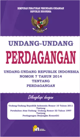 Sinopsis Buku: Buku ini membahas secara mendalam Undang-Undang Republik Indonesia Nomor 7 Tahun 2014 tentang Perdagangan, yang merupakan undang-undang perdagangan pertama dan terlengkap dalam sejarah Indonesia. UU ini mengatur seluruh kegiatan perdagangan secara menyeluruh, sejalan dengan perkembangan situasi perdagangan era globalisasi masa kini dan masa depan. UU ini tidak hanya menyinkronkan seluruh peraturan perundangan di bidang perdagangan, tetapi juga memberikan dasar hukum yang kuat bagi para investor dan memperkuat daya tarik Indonesia sebagai destinasi investasi yang menarik. Selain itu, UU ini juga memperkuat perlindungan dan pengamanan terhadap ekspor barang nasional, termasuk perlindungan terhadap tuduhan *dumping* dan subsidi, serta upaya mengatasi lonjakan impor melalui tindakan pengamanan perdagangan. UU ini tidak menunjukkan kecenderungan proteksionis, karena mekanisme perlindungan ini juga dilakukan oleh negara-negara lain dan tidak akan digugat oleh Organisasi Perdagangan Dunia (WTO). UU Perdagangan ini juga sangat menekankan pentingnya sektor jasa sebagai penentu daya saing ekspor Indonesia, dengan mengatur berbagai bidang jasa seperti bisnis, pendidikan, kesehatan, pariwisata, dan transportasi. Dengan adanya UU ini, Indonesia diharapkan dapat meningkatkan perdagangan nasional yang lebih maju dan berkeadilan, serta menyiapkan diri menghadapi tantangan perdagangan global di masa depan.