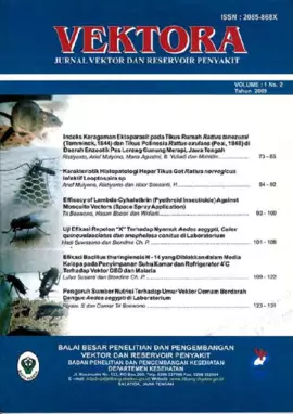 VEKTORA : JURNAL VEKTOR DAN RESERVOIR PENYAKIT = Journal of Vector Borne and Reservoir Diseases Volume 1 Nomor 2 Oktober 2009 Ristiyanto; Arief Mulyono; Maria Agustina; Bernadus Yuliadi; Muhidin; Noor Soesanti H; Damar Tri Boewono; Hasan Boesri; Widiarti; Hadi Suwasono; Blondine Ch.P; Lulus Susanti; Riyani Setiyaningsih B2P2VRP Kesehatan Kesehatan 3636