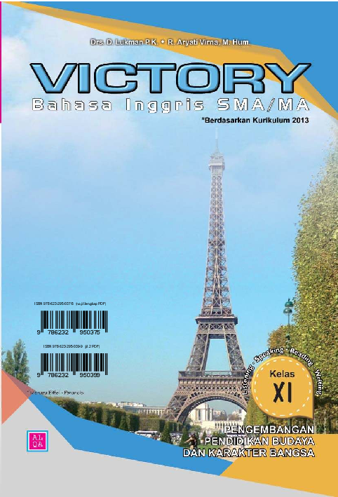 Sebagai bagian dari Kurikulum 2013 bahasa Inggris termasuk ke dalam Kelompok Mata Pelajaran Wajib Kelompok A Salah satu ciri penerapan Kurikulum 2013 pada pelajaran bahasa Inggris yaitu kesamaan isi kurikulum KI dan KD serta kemasan substansi antara SMA MA dan SMK MAK Oleh karena itu buku bertajuk VICTORY ini disusun sebagai sarana pendukung dalam proses peningkatan kompetensi serta wawasan peserta didik SMA MA dan SMK MAK Pembelajaran bahasa Inggris melalui buku ini menekankan pentingnya keseimbangan kompetensi sikap pengetahuan dan keterampilan Kemampuan bahasa Inggris dibentuk melalui pembelajaran berkelanjutan mulai dari Listening Speaking Reading dan Writing hingga pembentukan sikap jujur santun kreatif peduli dan percaya diri