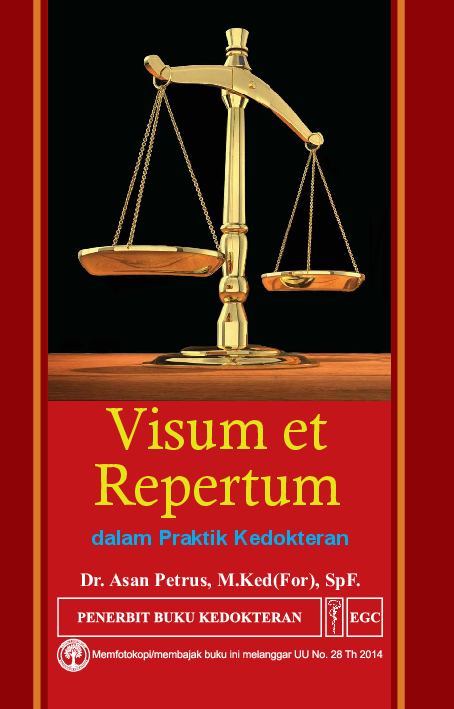Visum et Repertum dalam Praktik kedokteran Memberikan wawasan dan pedoman kepada para mahasiswa dan para dokter di daerah perifer untuk melaksanakan tugas sebagai dokter yang seringkali harus melaksanakan dan dimintai Visum et Repertum Bahasa yang disajikan cukup sederhana walaupun banyak menyangkut bahasa hukum yang sering kurang dipahami oleh para dokter Diharapkan buku ini dapat menyumbangkan referensi kecil untuk bidang ilmu forensik