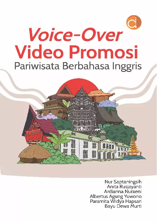 E Book periklanan dan kebahasaan yang berjudul Voice Over Video Promosi Pariwisata Berbahasa Inggris merupakan buku karya Nur Saptaningsih et al Buku ini ditujukan kepada pihak pihak yang terkait dengan pembuatan buklet promosi pariwisata berbahasa Indonesia dan Inggris secara khusus dan materi promosi pariwisata dwibahasa lainnya secara umum E Book ini berisi hal hal mendasar terkait pembuatan buklet promosi pariwisata dwibahasa yaitu bahasa Indonesia dan Inggris yang meliputi teks dwibahasa buklet mediasi dan promosi dan merancang buklet promosi pariwisata dwibahasa