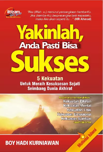 Sinopsis Singkat Buku "Yakinlah Anda Pasti Bisa Sukses" oleh Boy Hadi Kurniawan Buku ini adalah panduan praktis dan motivasi yang dirancang untuk membangun keyakinan, motivasi, dan semangat dalam diri pembaca agar mampu meraih kesuksesan dalam hidup. Penulis menjelaskan bahwa kesuksesan bukanlah hal yang mustahil, melainkan hasil dari usaha, kerja keras, dan kepercayaan diri yang kuat. Buku ini membahas lima kekuatan dahsyat yang terdapat dalam diri manusia, yang jika diaktifkan, akan menjadi fondasi untuk mencapai tujuan dan mimpi hidup. Buku ini juga memberikan wawasan tentang pentingnya spiritualitas dalam proses pencapaian kesuksesan, yakni dengan beribadah kepada Allah dan menjalani hidup dengan kesabaran serta ketekunan. Penulis menekankan bahwa jalan menuju sukses penuh dengan tantangan dan rintangan, namun dengan semangat dan kepercayaan yang mantap, setiap orang pasti bisa meraihnya. Dengan bahasa yang mudah dipahami dan penuh semangat, buku ini menjadi sumber motivasi bagi siapa pun yang ingin meraih keberhasilan di dunia dan akhirat.