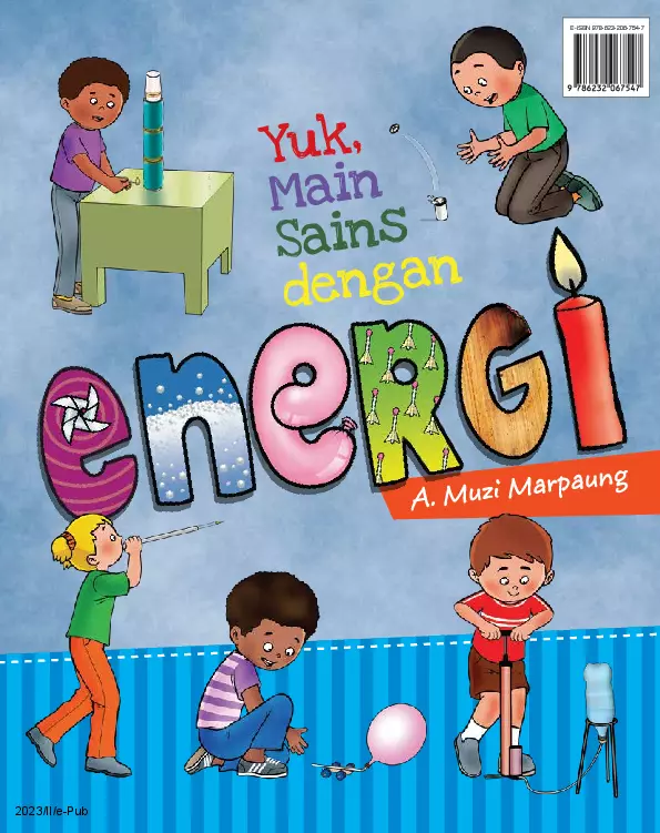 Sinopsis Buku: Yuk, Main Sains dengan Energi Buku ini merupakan panduan interaktif yang mengajak anak-anak untuk menjelajahi dunia sains melalui berbagai eksperimen sederhana dan menarik. Dengan konsep yang mudah dipahami, buku ini membahas berbagai bentuk energi dan prinsip kerjanya, seperti energi mekanik, energi kimia, energi panas, dan energi gerak. Setiap bab dilengkapi dengan langkah-langkah eksperimen yang praktis, alat dan bahan yang dibutuhkan, serta penjelasan ilmiah yang jelas. Dari kincir air yang memanfaatkan energi aliran air, hingga roket udara yang memanfaatkan energi kinetik, buku ini mengajak pembaca untuk belajar sains sambil bermain. Dengan pendekatan yang kreatif dan edukatif, buku ini menjadi alat pembelajaran yang efektif untuk meningkatkan pemahaman anak-anak tentang konsep-konsep sains dasar.