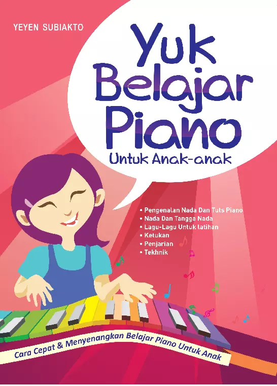 Sinopsis Buku: Buku ini merupakan panduan menyenangkan dan praktis untuk memperkenalkan anak-anak usia 3–6 tahun pada dunia musik, khususnya bermain piano. Dengan pendekatan yang menarik dan sesuai dengan usia anak, buku ini dirancang untuk memudahkan anak dalam mempelajari dasar-dasar bermain piano secara bertahap, tanpa tekanan berlebihan. Tujuan utama dari buku ini adalah membuat anak senang bermain piano, sehingga memicu perkembangan kreativitas dan kemampuan kognitifnya. Buku ini juga membantu orang tua dan pengajar dalam mengajarkan musik dengan cara yang menyenangkan, sehingga anak dapat belajar dengan lebih mudah dan terus-menerus berkembang dalam bidang musik. Dengan struktur yang jelas dan langkah-langkah yang terukur, buku ini menjadi pendamping yang baik dalam perjalanan belajar anak untuk bermain piano.