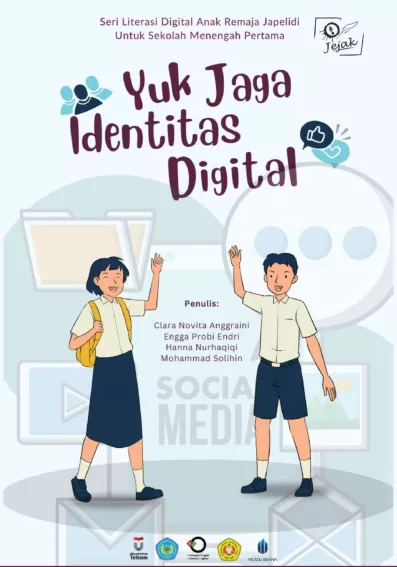 Yuk Jaga Identitas Digital berisi panduan untuk mengenal hak identitas digital untuk anak remaja Sekolah Menengah Pertama Buku ini terdiri dari lima bagian utama Pertama hak identitas digital anak dalam bab ini dibahas definisi dan kedudukan hak identitas digital anak dalam kehidupan bermasyarakat Kedua bab resiko kebocoran identitas digital pada bagian ini dipaparkan berbagai resiko yang dapat muncul dari kegiatan bermedia digital sehari hari yang seringkali tidak disadari Ketiga hak perlindungan privasi pada bab ini dipaparkan bagaimana perlindungan privasi didapatkan oleh seorang anak remaja Keempat platform digital yang digunakan siswa SMP beserta kebijakan privasi yang mengikutinya Terakhir bab pengalaman menjaga identitas digital saat duduk di Sekolah Menengah Pertama Bab penutup ini berisikan pengalaman kebocoran identitas digital cara berdamai dengan resiko yang tidak diketahui sebelumnya dan juga solusi dalam menghadapi kebocoran identitas digital selamat membaca