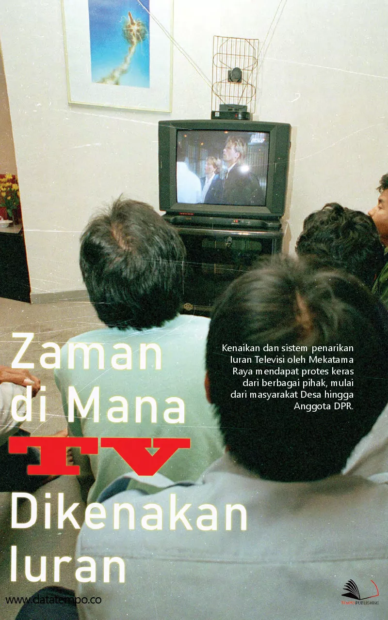 Protes kenaikan iuran televisi Iuran televisi untuk meningkatkan mutu siaran Target pendapatan dan penerimaan iuran televisi Kericuhan Mekatama Raya dengan koordinator wilayah Iuran yang dipungut TVRI tidak menjadi persoalan bagi masyarakat walau membayar di Kantor Pos Kini menjadi salah satu beban Disamping naik 100 juga membayar lewat Bank atau Kantor Pos
